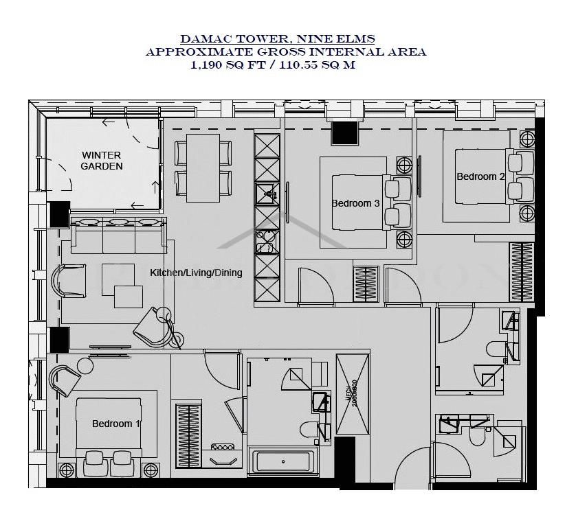 Новая квартира с тремя спальнями с аспектом на северную и восточную часть Лондона, расположенная на верхнем этаже Damac Tower. Квартира с зимним садом и фантастическими видами на Лондон, включая Темзу, Shard, London Eye, Big Ben и здание Британского Парламента.