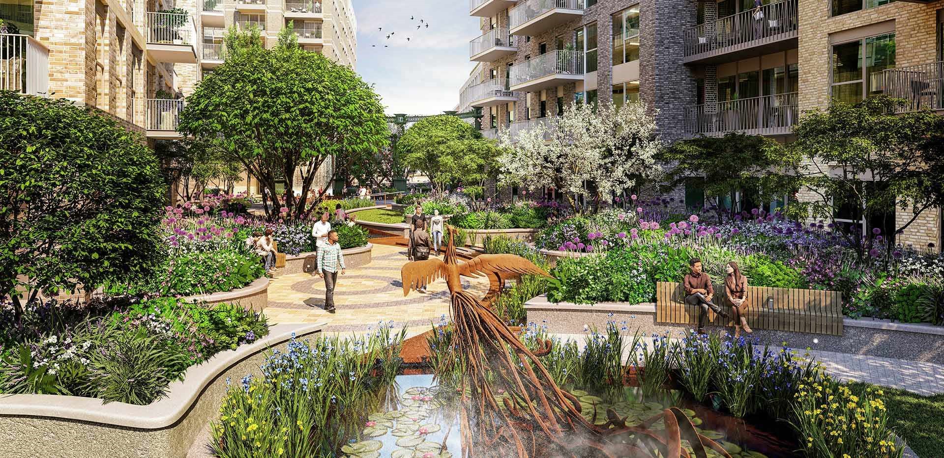 Эта новостройка находится в престижном и очень популярном западном районе Лондона Илинг. Когда-то Илинг считался зеленым пригородом Лондона, но уже 1963 года, с бурным развитием транспорта, он стал Лондоном и начал свою экспансию. Сейчас это район с развитой экономикой и бурной ночной жизнью.