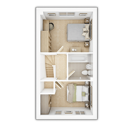 На втором этаже расположены две большие спальные комнаты и большая ванная комната.