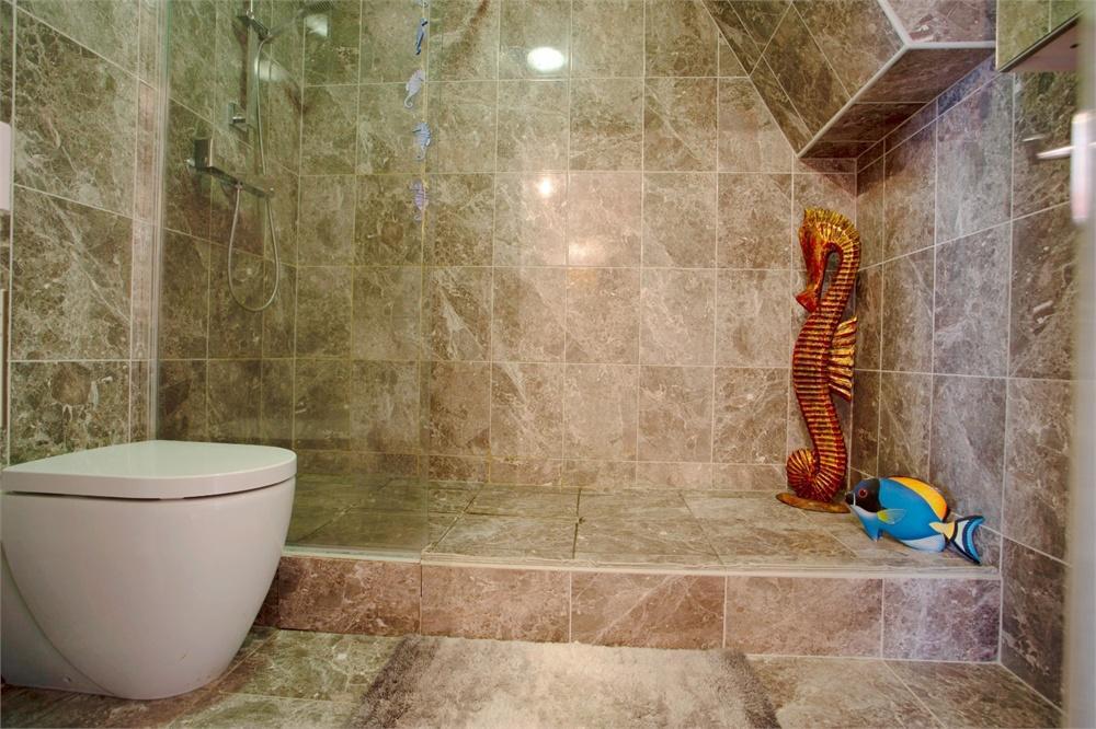 Душевая – современный люкс, состоящий из туалета на низком уровне, умывальника и душевой кабины со стеклянной перегородкой. Плитка от пола до потолка, есть вытяжка.